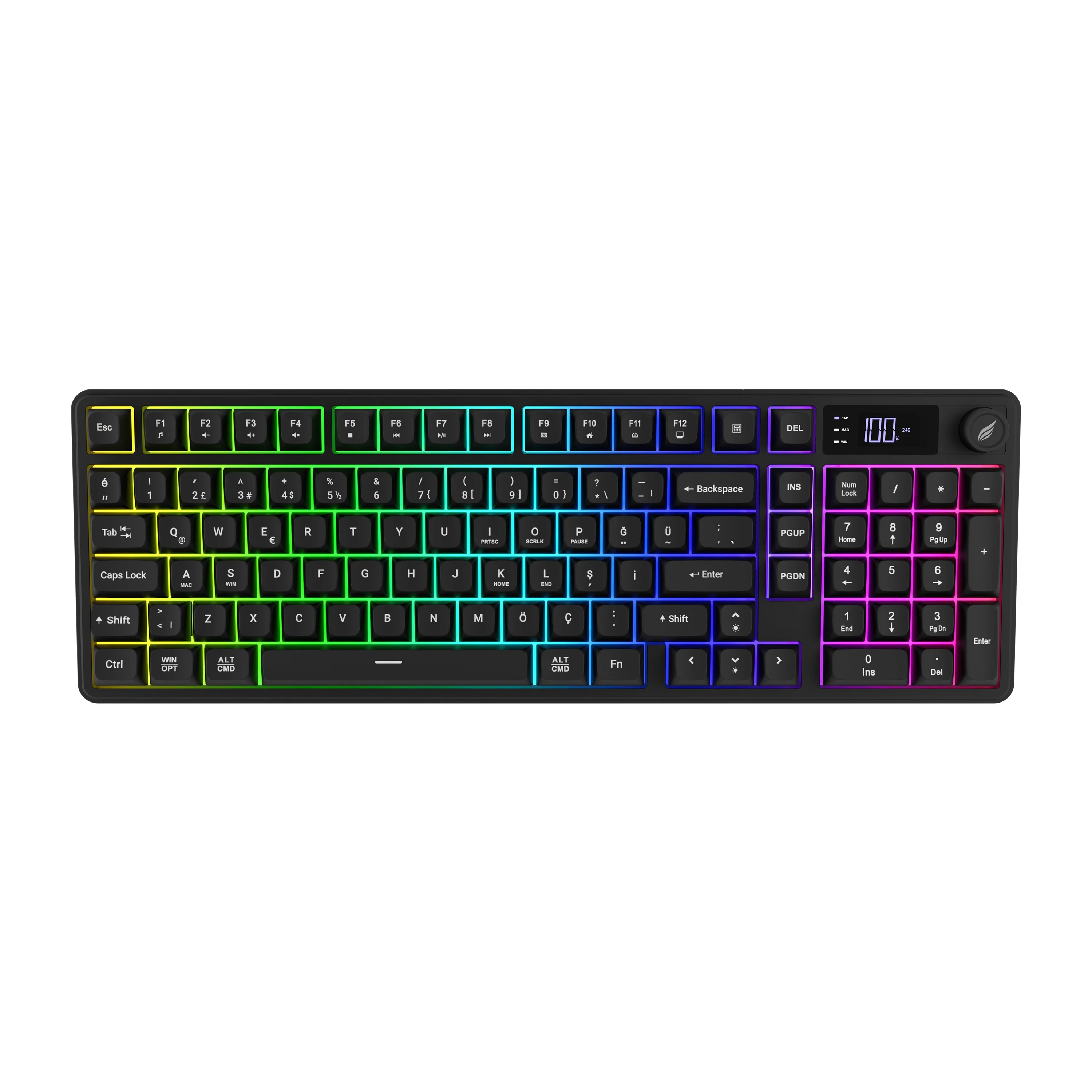 HK258 Membrane LCD RGB Kablosuz/Bluetooth Siyah Full Türkçe Gaming Oyuncu Klavye