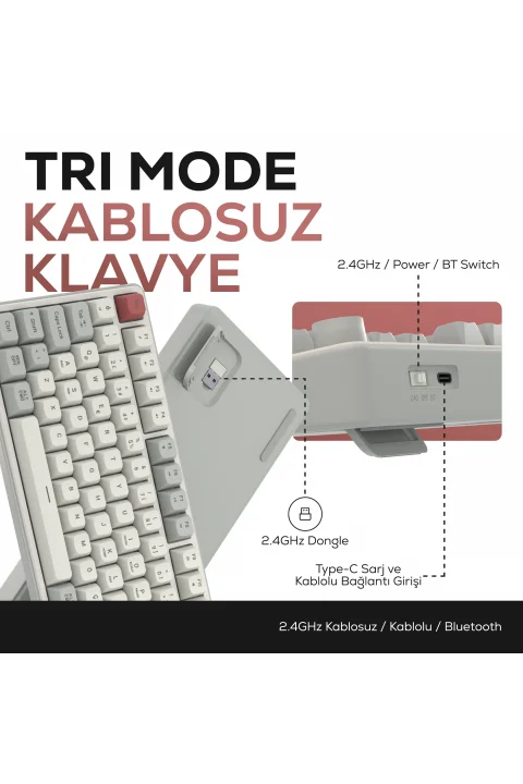 HK251 Membrane RGB Kablosuz/Bluetooth Beyaz %65 Türkçe Gaming Oyuncu Klavye