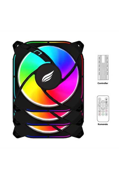HF120 Silentforce 120mm ARGB Üçlü Kontrolcü ve Kumanda Dahil Siyah Kasa Fanı